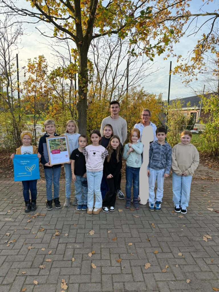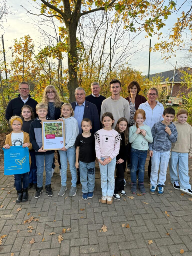 Für das Engagement wurde die Garten-AG unter der Leitung von Wiebke Helmes mit dem Klimaschutzpreis der Westenergie ausgezeichnet. Am 04.11. wurde in Anwesenheit von Vertretern der Verwaltung, des Bürgermeisters und von Westenergie feierlich die Urkunde verliehen, verbunden mit einem Geldpreis in Höhe von 300 €.