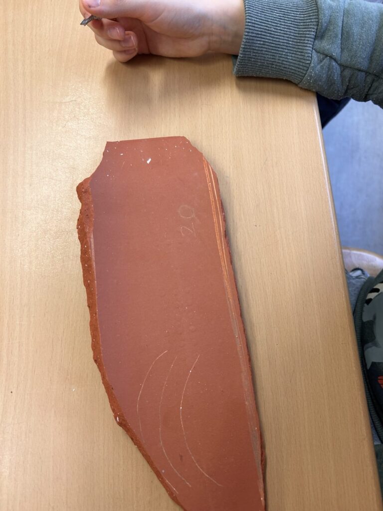 Dabei hat sich die erste Gruppe damit beschäftigt auf Ostraka ähnlichem Material zu schreiben.