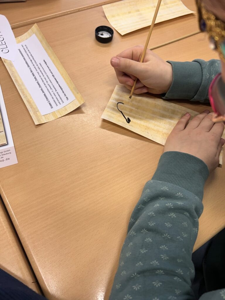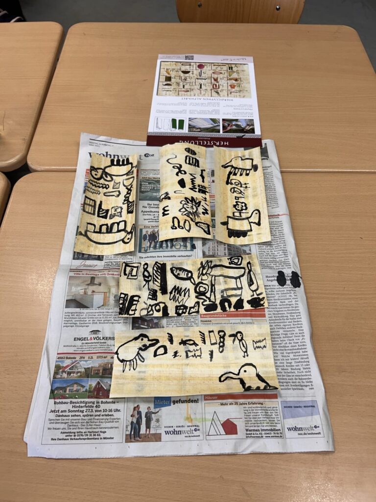 Die zweite Gruppe hat ihren Fokus auf das Schreiben in Hieroglyphen auf Papyrus gesetzt.