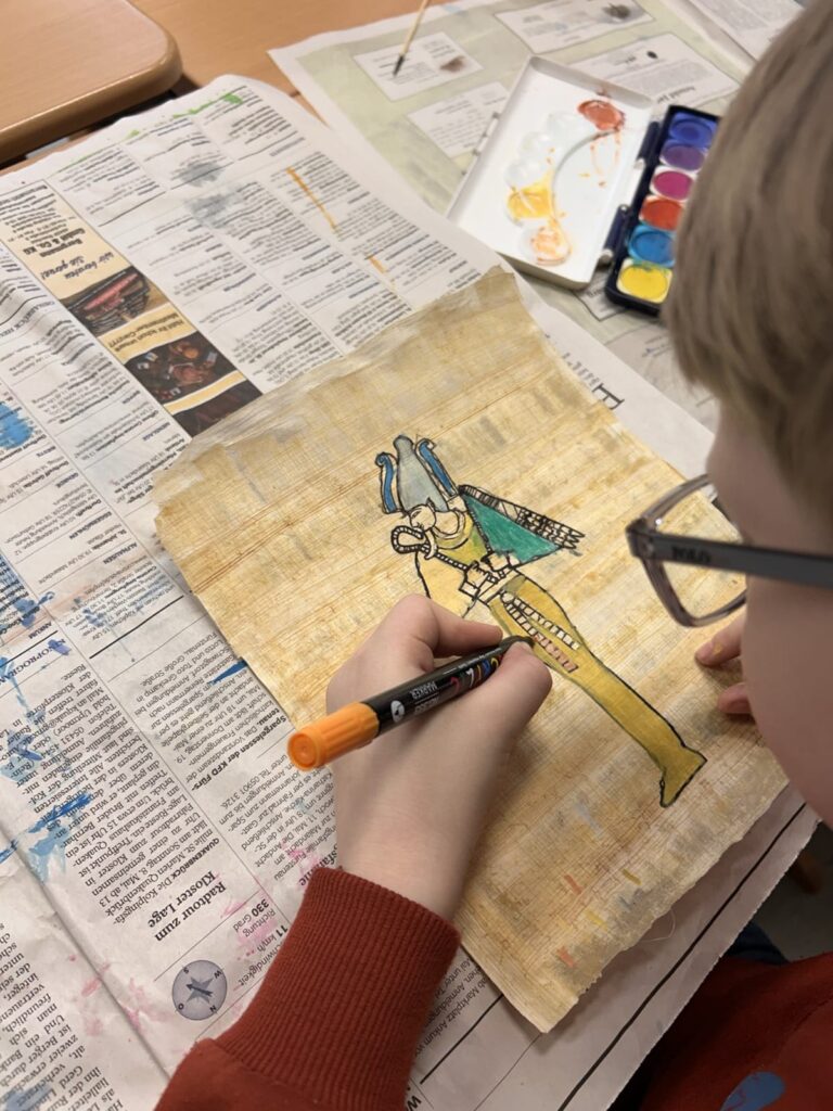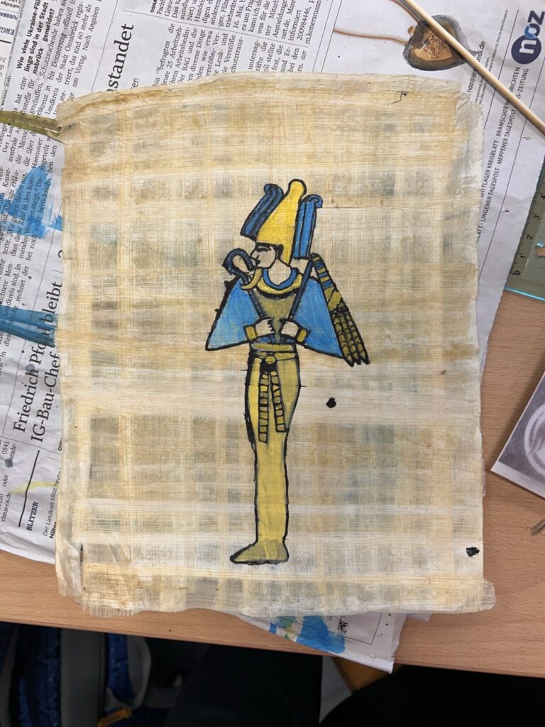 Die dritte Gruppe durfte versuchen, den Gott Osiris auf Papyrus nachzumalen.