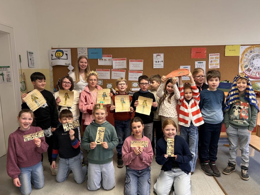 Zum Ende des Projekttages hatten die Kinder noch eine Überraschung für mich vorbereitet – eine sogenannte „Bodypercussion“. Dabei werden zu einem Song bestimmte Bewegungen vorgegeben, die die Schülerinnen und Schüler dann nachmachen durften. Der Titel lautete „Walking like an Egyptian“. Dies war ein schöner Abschluss.